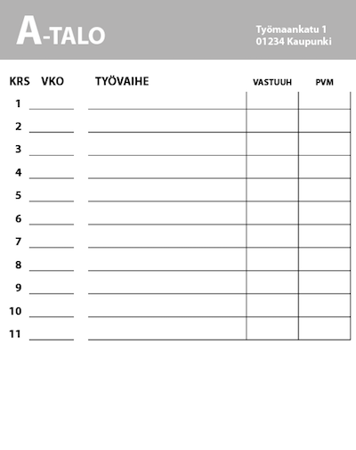 Porrastauluissa esitetään mm. käynnissä olevat työvaiheet, aikataulut ja huomioitavat asiat.
